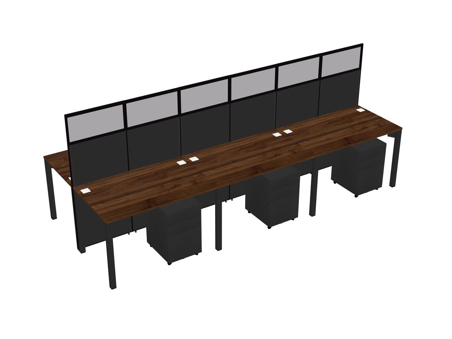 Columbia Walnut Shared Rectangular Office Cubicle Panel System With Mobile Drawers For 6 Persons