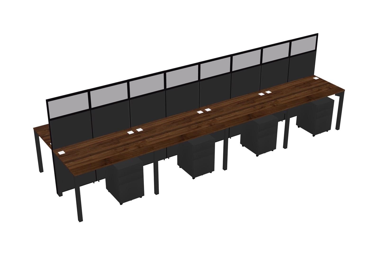 Columbia Walnut Shared Rectangular Office Cubicle Panel System With Mobile Drawers For 8 Persons