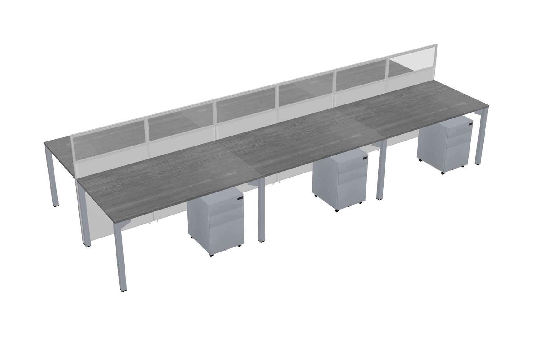 Grey Shared Rectangular Office Cubicle Panel System With Mobile Drawers For 6 Persons