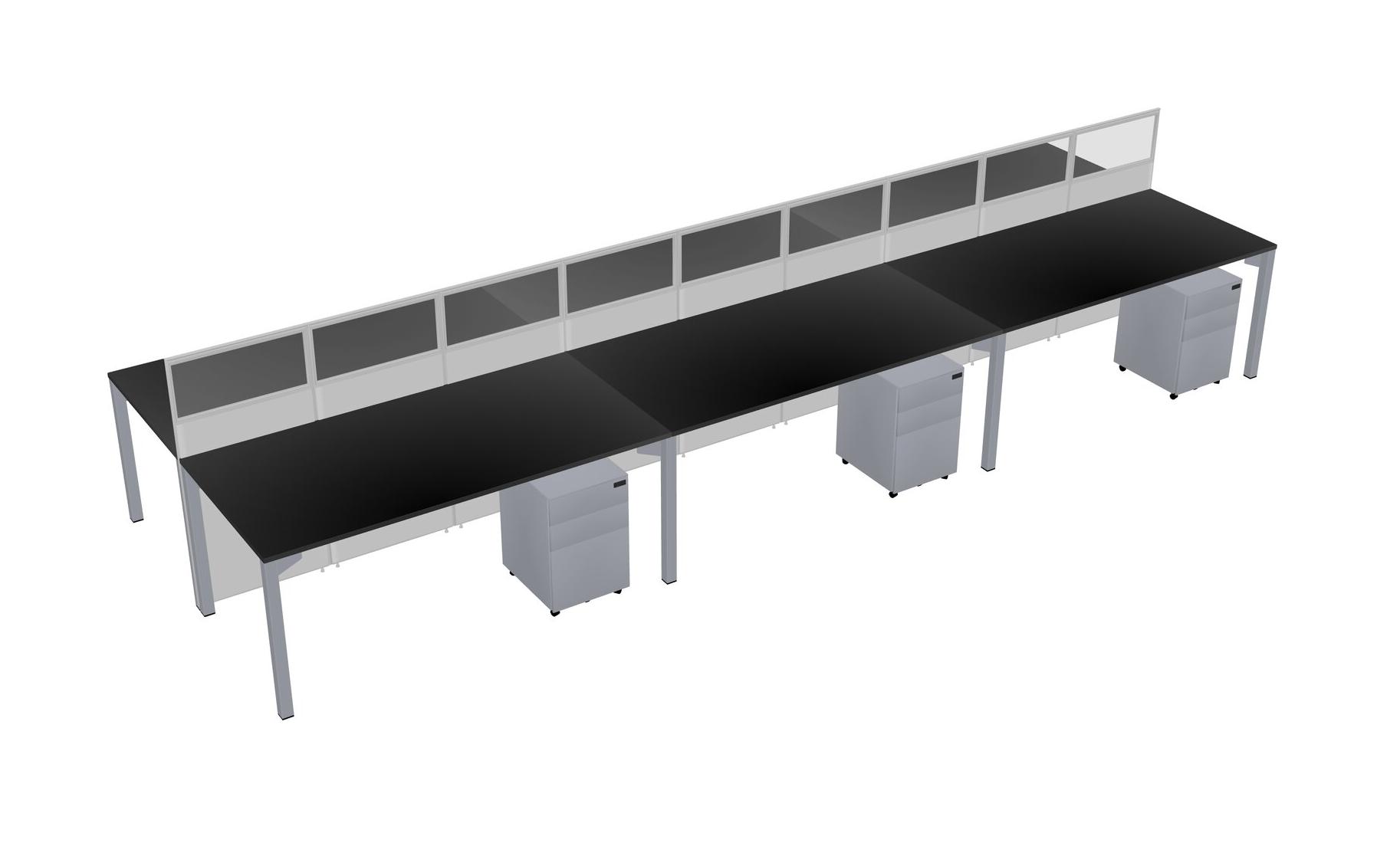 Black Shared Rectangular Office Cubicle Panel System With Mobile Drawers For 6 Persons