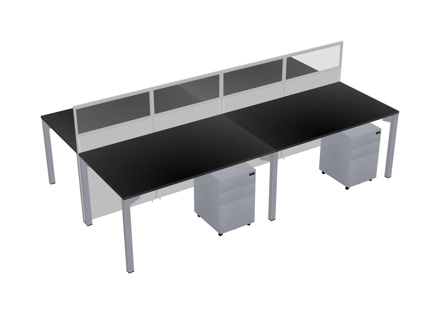Black Shared Rectangular Office Cubicle Panel System With Mobile Drawers For 4 Persons