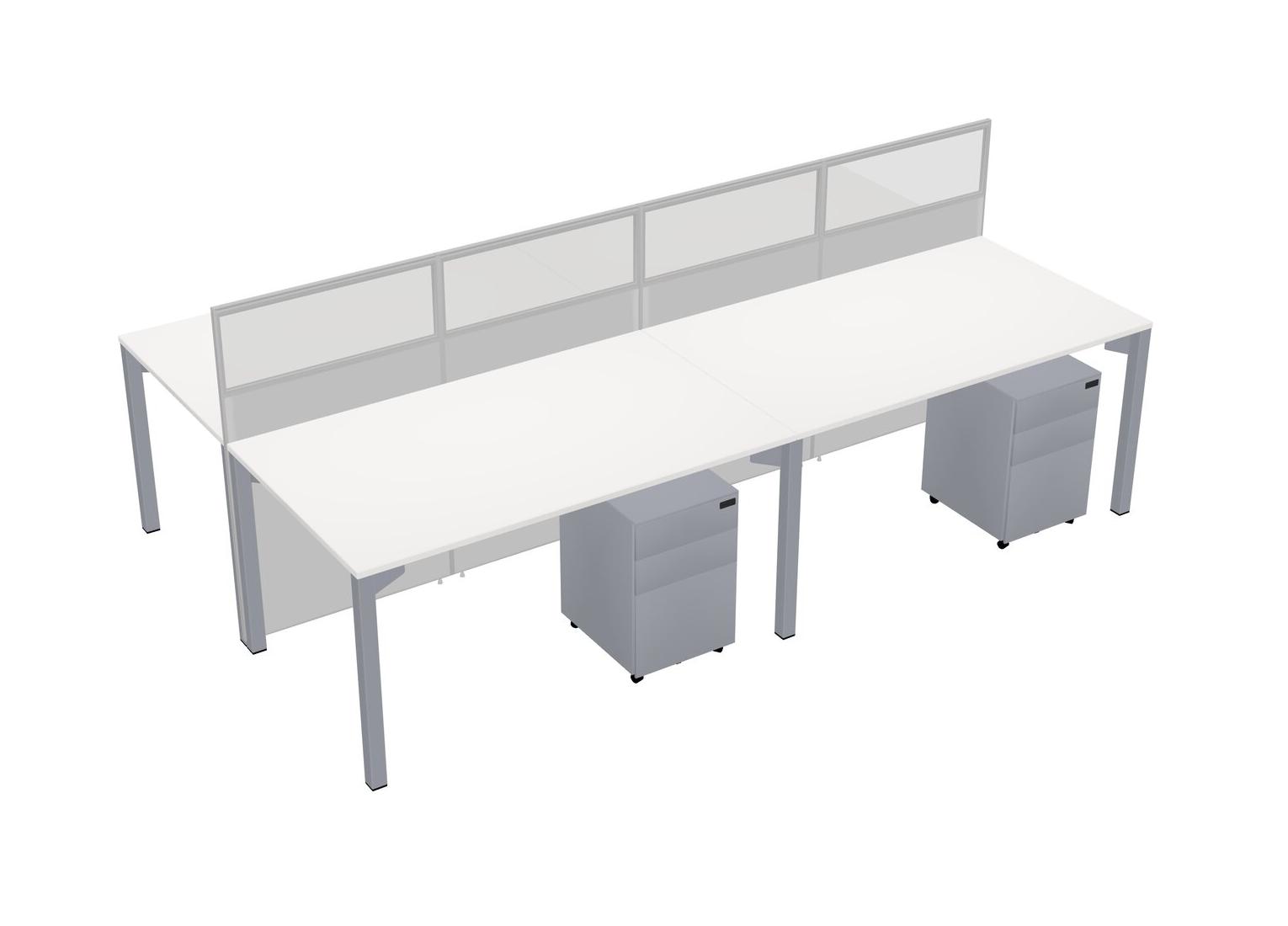 White Shared Rectangular Office Cubicle Panel System With Mobile Drawers For 4 Persons