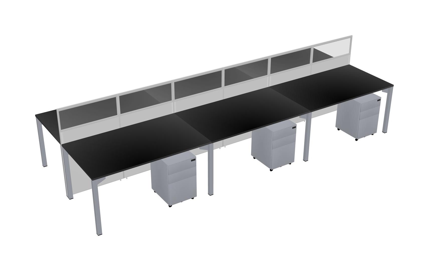 Black Shared Rectangular Office Cubicle Panel System With Mobile Drawers For 6 Persons