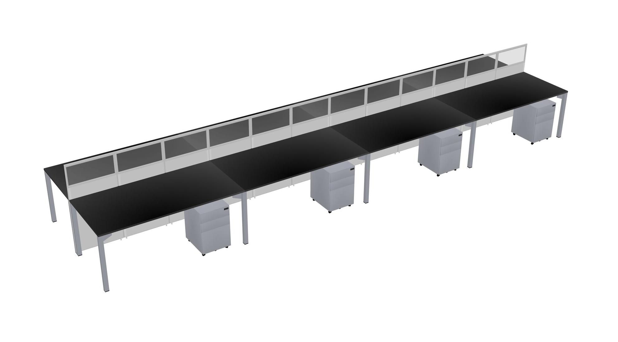 Black Shared Rectangular Office Cubicle Panel System With Mobile Drawers For 8 Persons