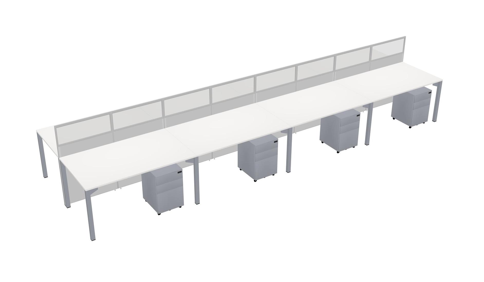 White Shared Rectangular Office Cubicle Panel System With Mobile Drawers For 8 Persons