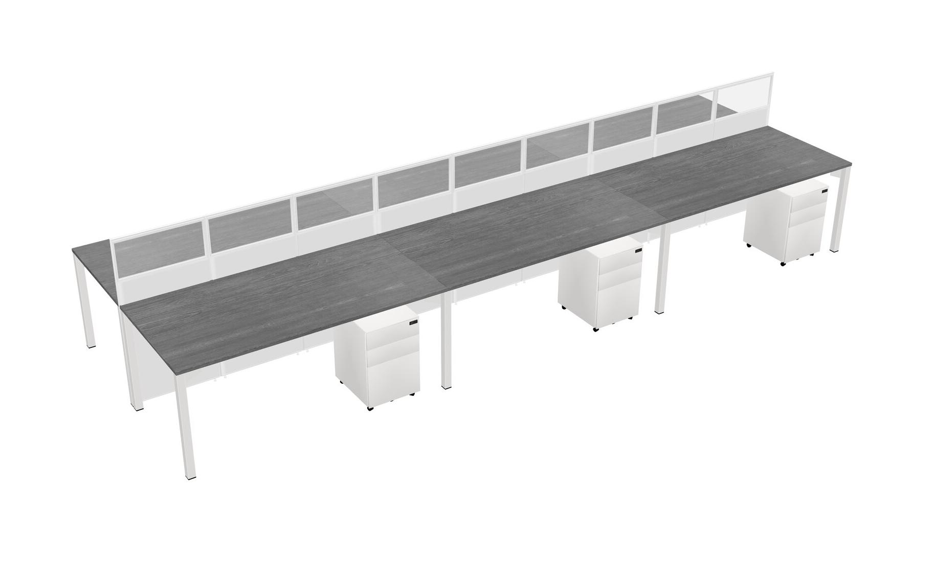 Grey Shared Rectangular Office Cubicle Panel System With Mobile Drawers For 6 Persons