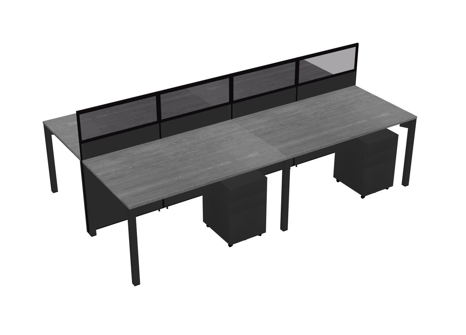 Grey Shared Rectangular Office Cubicle Panel System With Mobile Drawers For 4 Persons