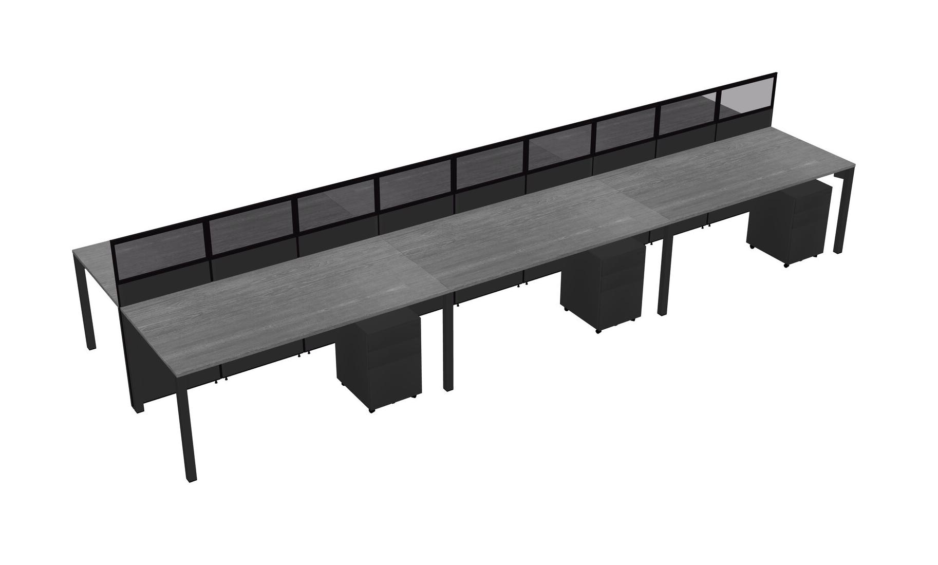 Grey Shared Rectangular Office Cubicle Panel System With Mobile Drawers For 6 Persons
