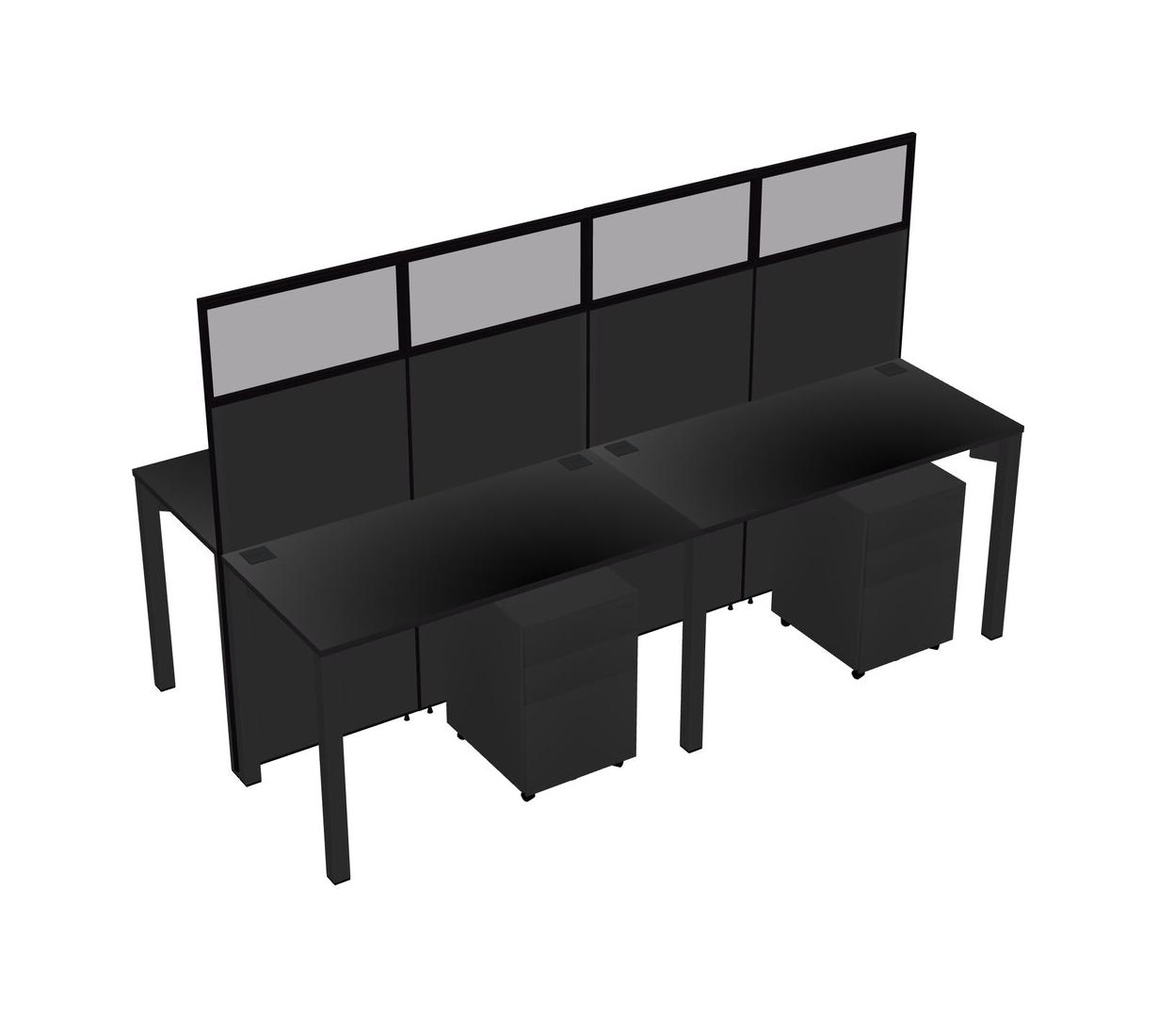 Black Shared Rectangular Office Cubicle Panel System With Mobile Drawers For 4 Persons
