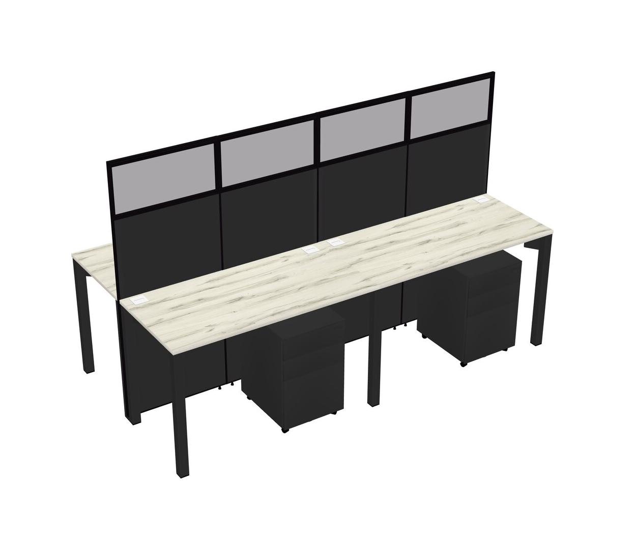 Heinne Holz Shared Rectangular Office Cubicle Panel System With Mobile Drawers For 4 Persons