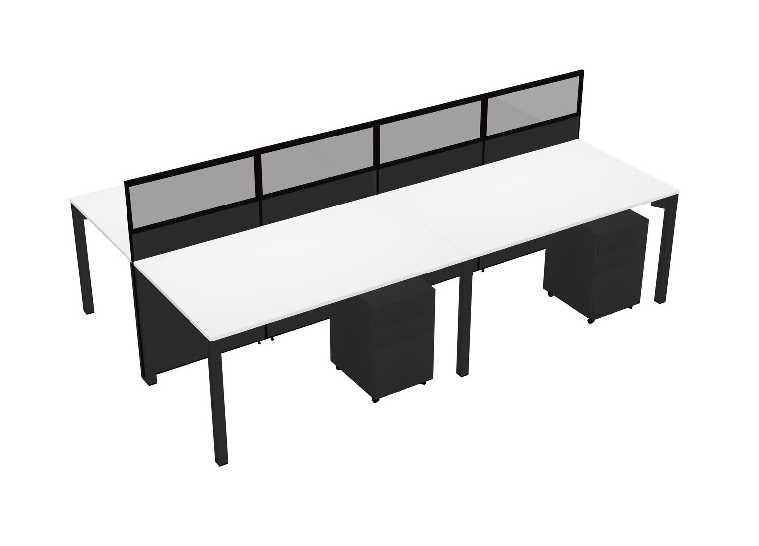 White Shared Rectangular Office Cubicle Panel System With Mobile Drawers For 4 Persons