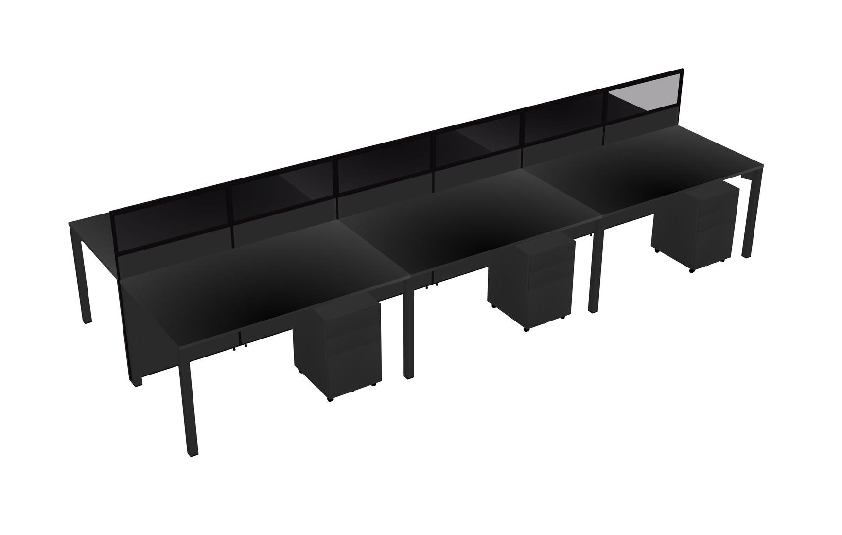 Black Shared Rectangular Office Cubicle Panel System With Mobile Drawers For 6 Persons