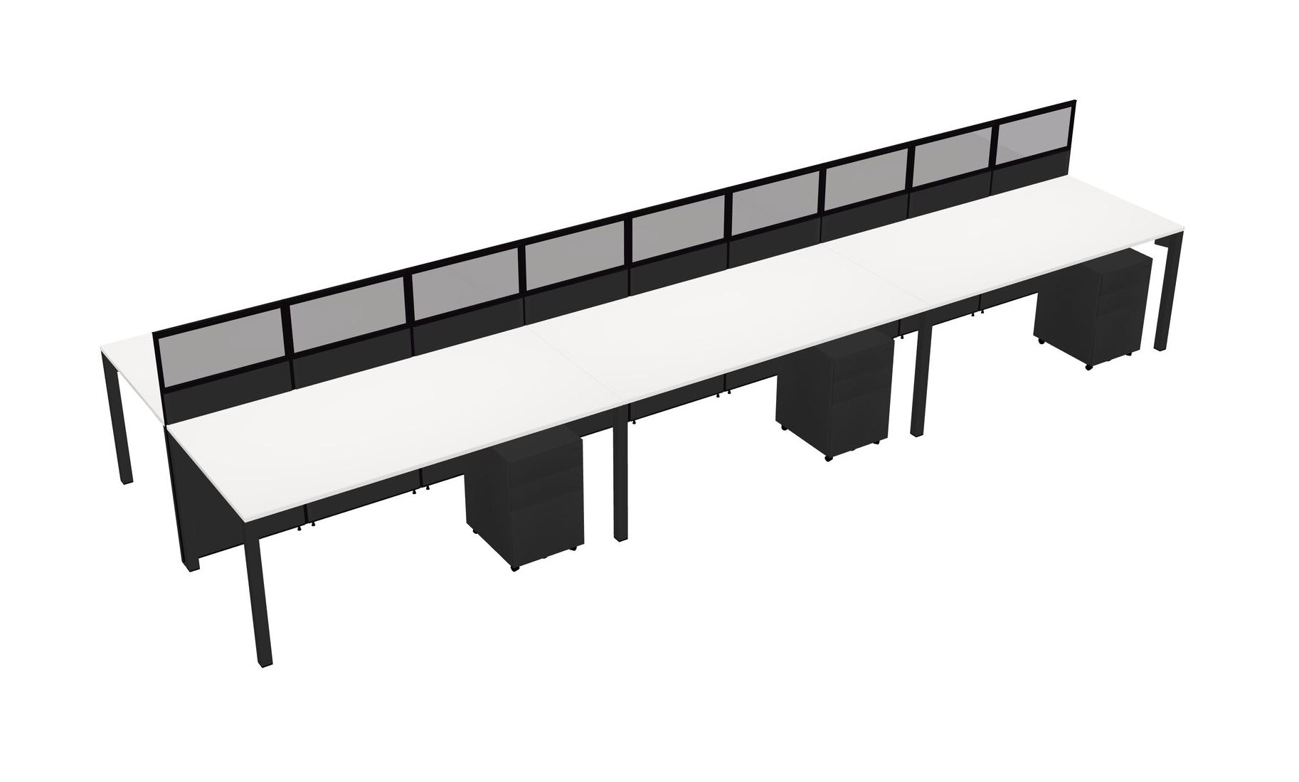 White Shared Rectangular Office Cubicle Panel System With Mobile Drawers For 6 Persons