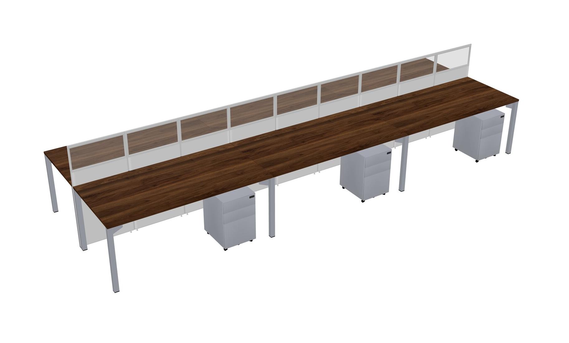 Columbia Walnut Shared Rectangular Office Cubicle Panel System With Mobile Drawers For 6 Persons