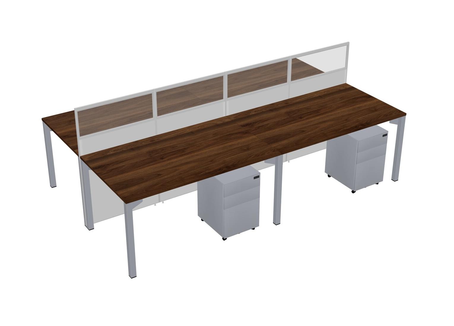 Columbia Walnut Shared Rectangular Office Cubicle Panel System With Mobile Drawers For 4 Persons