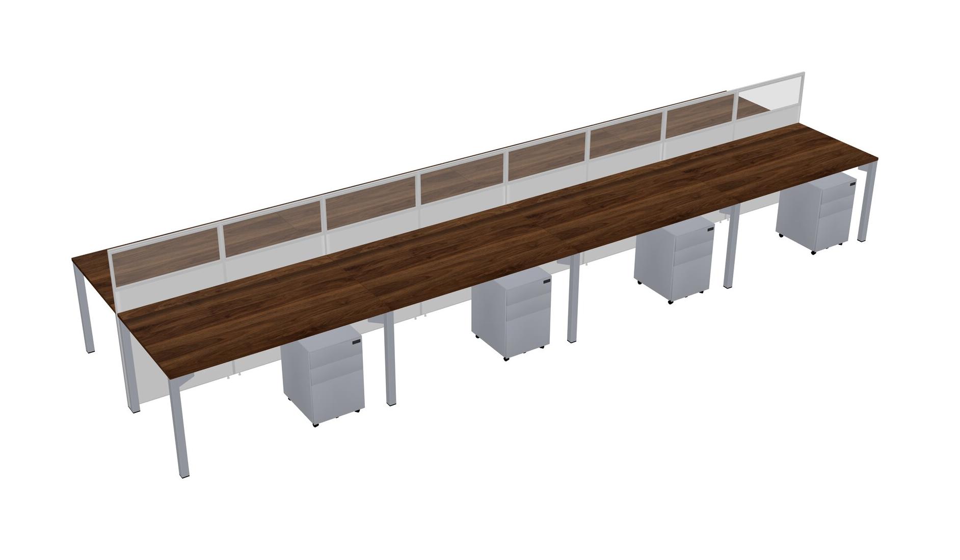Columbia Walnut Shared Rectangular Office Cubicle Panel System With Mobile Drawers For 8 Persons