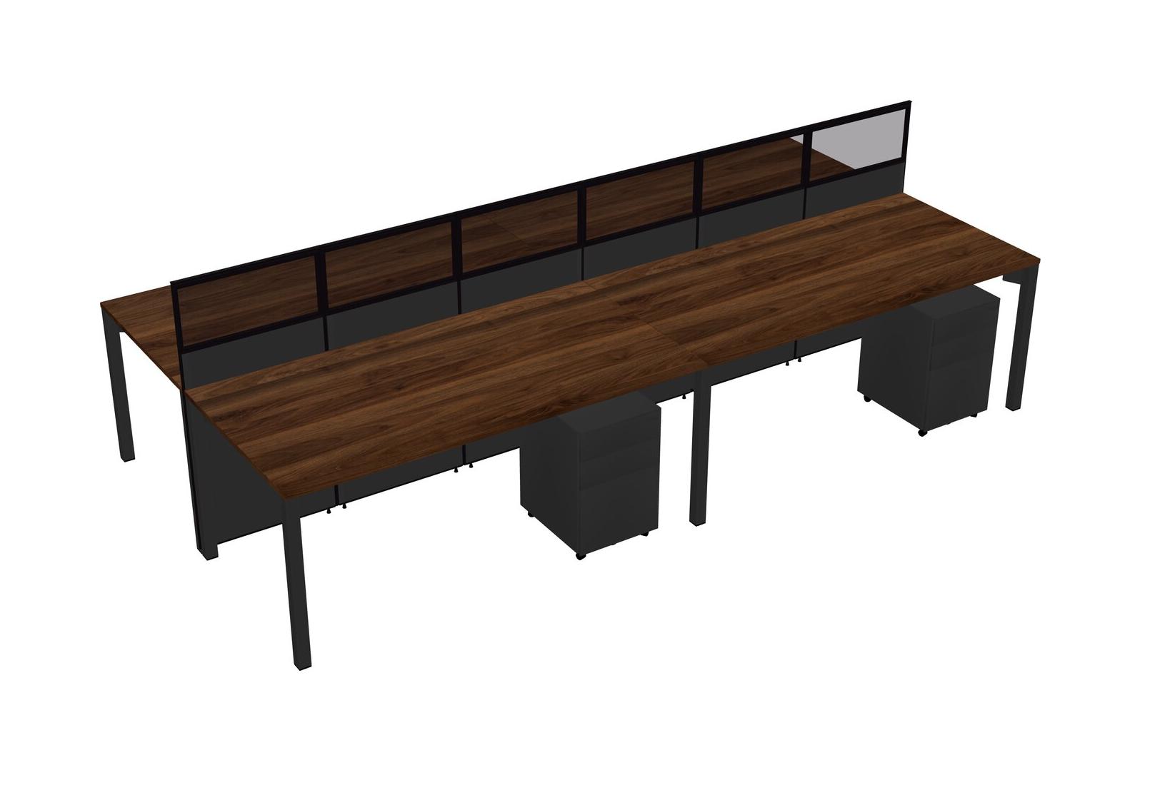 Columbia Walnut Shared Rectangular Office Cubicle Panel System With Mobile Drawers For 4 Persons