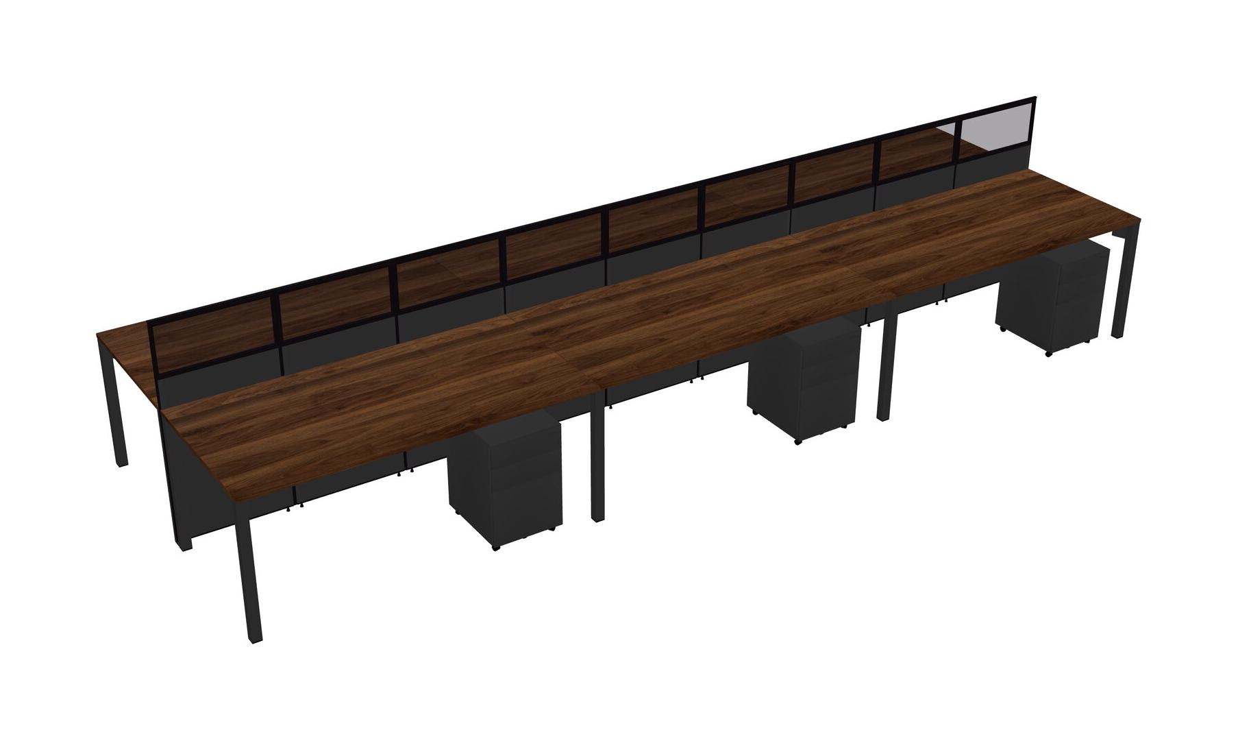 Columbia Walnut Shared Rectangular Office Cubicle Panel System With Mobile Drawers For 6 Persons