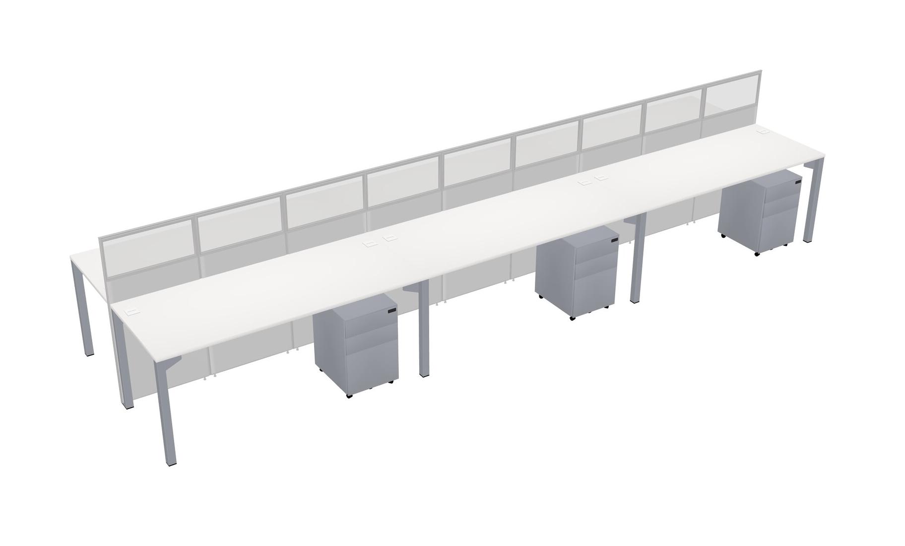 White Shared Rectangular Office Cubicle Panel System With Mobile Drawers For 6 Persons