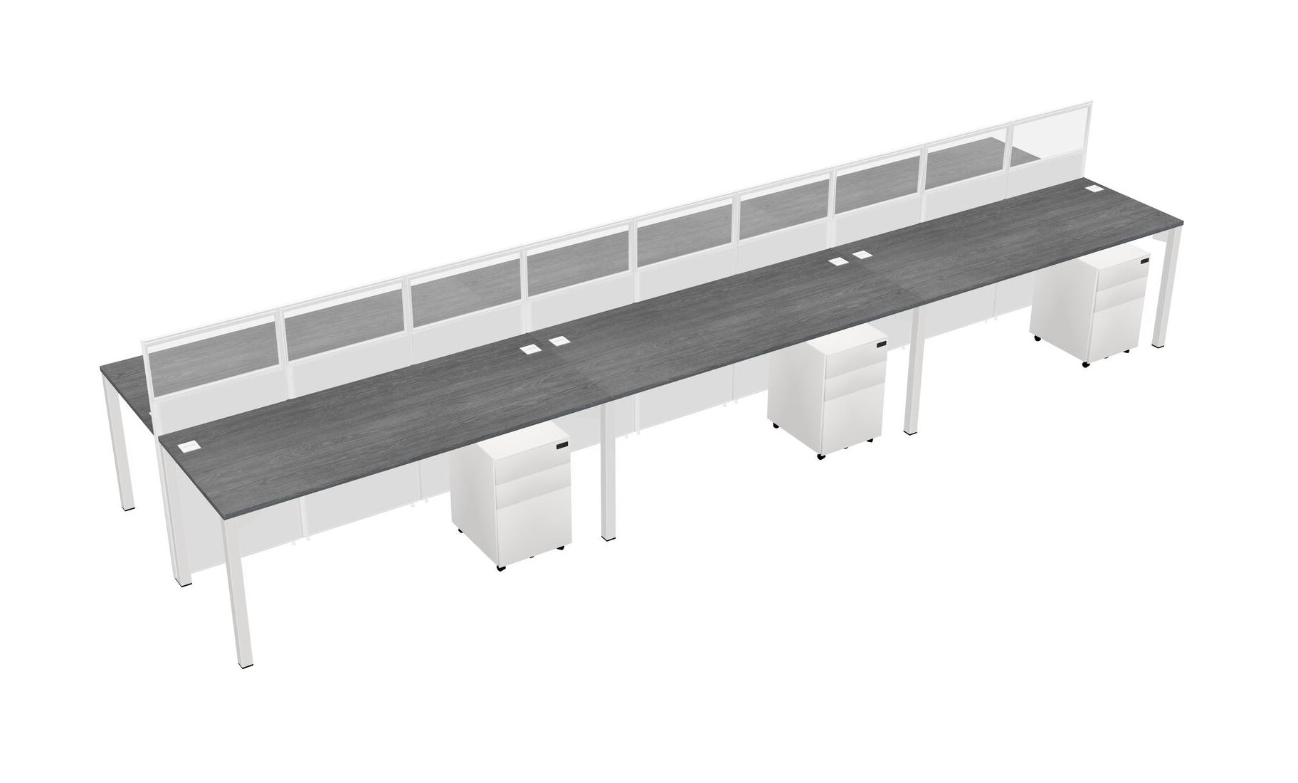 Grey Shared Rectangular Office Cubicle Panel System With Mobile Drawers For 6 Persons