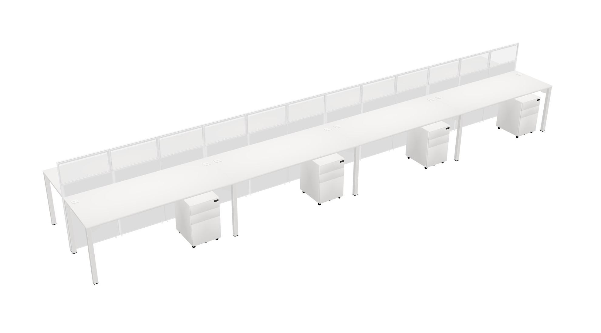 White Shared Rectangular Office Cubicle Panel System With Mobile Drawers For 8 Persons