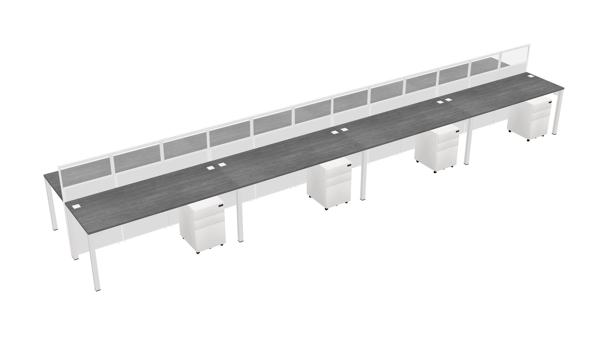 Grey Shared Rectangular Office Cubicle Panel System With Mobile Drawers For 8 Persons