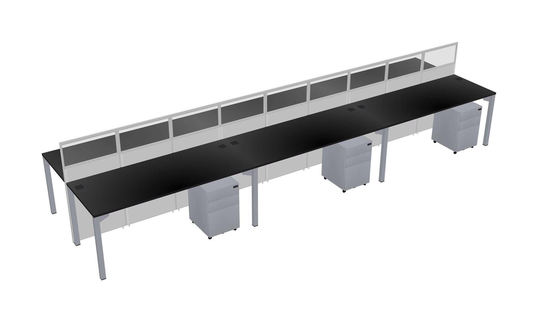 Black Shared Rectangular Office Cubicle Panel System With Mobile Drawers For 6 Persons