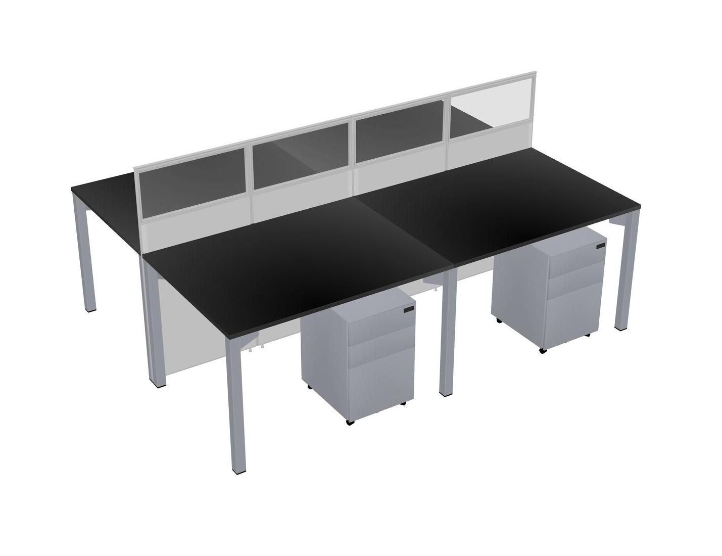 Black Shared Rectangular Office Cubicle Panel System With Mobile Drawers For 4 Persons