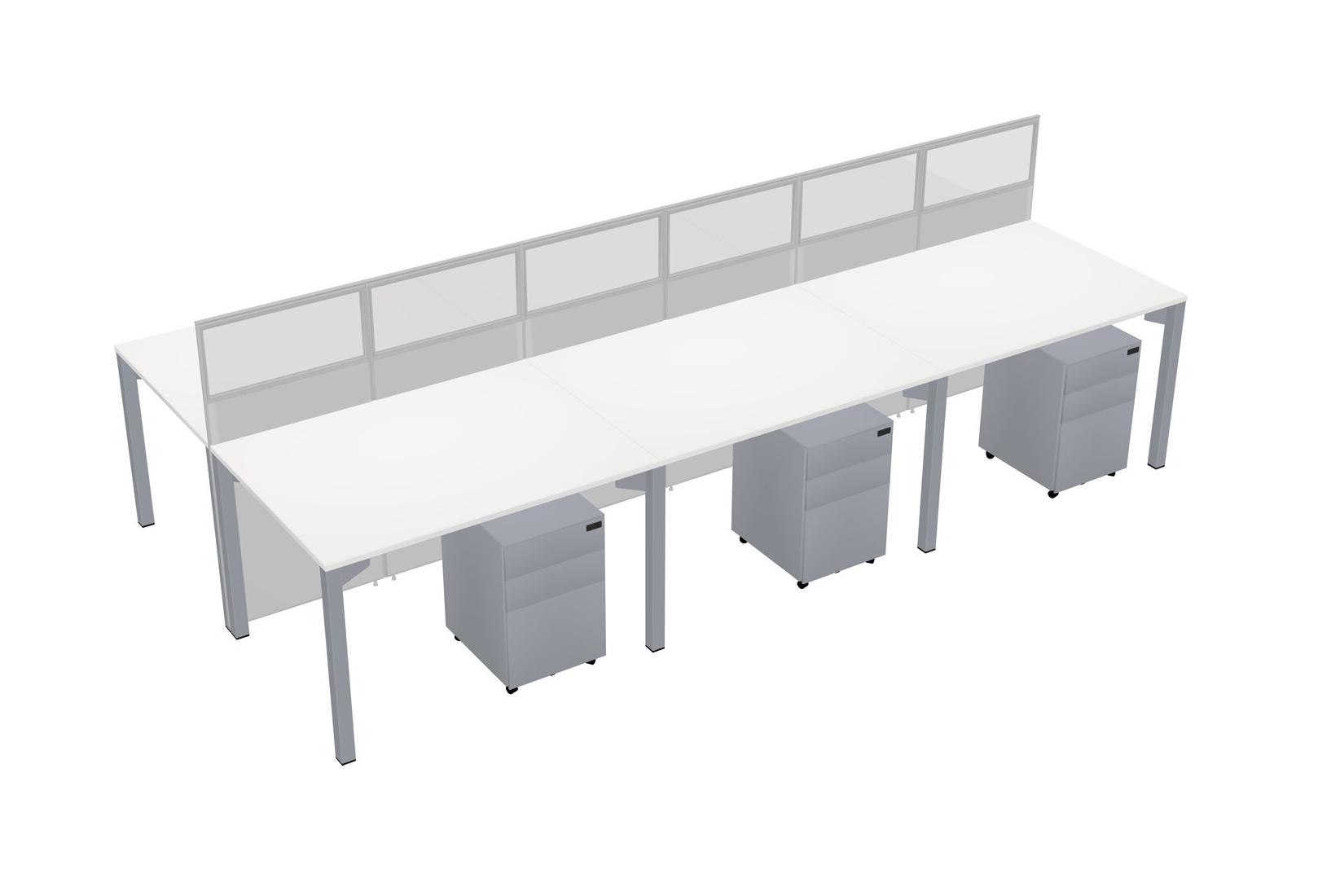 White Shared Rectangular Office Cubicle Panel System With Mobile Drawers For 6 Persons
