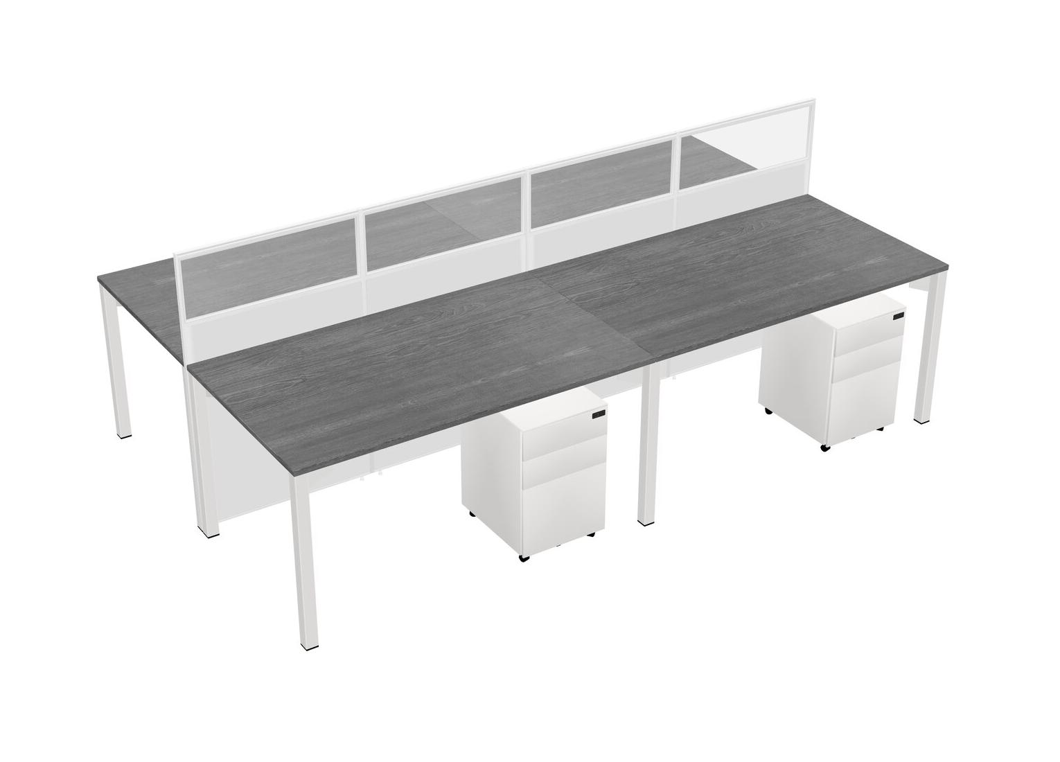 Grey Shared Rectangular Office Cubicle Panel System With Mobile Drawers For 4 Persons