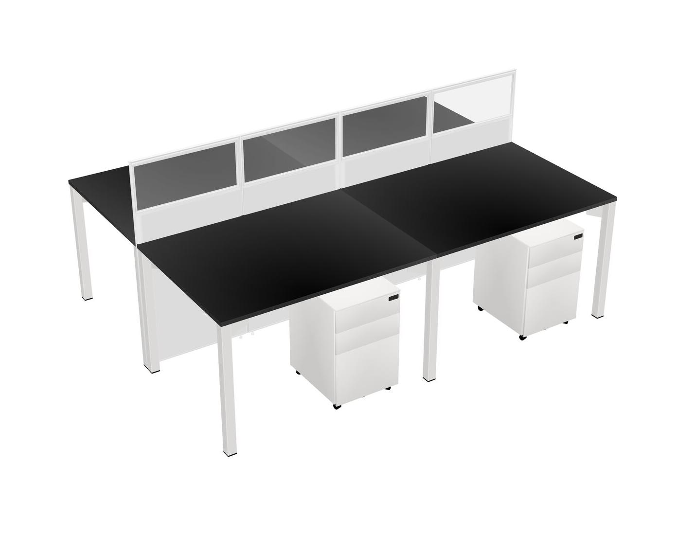 Black Shared Rectangular Office Cubicle Panel System With Mobile Drawers For 4 Persons