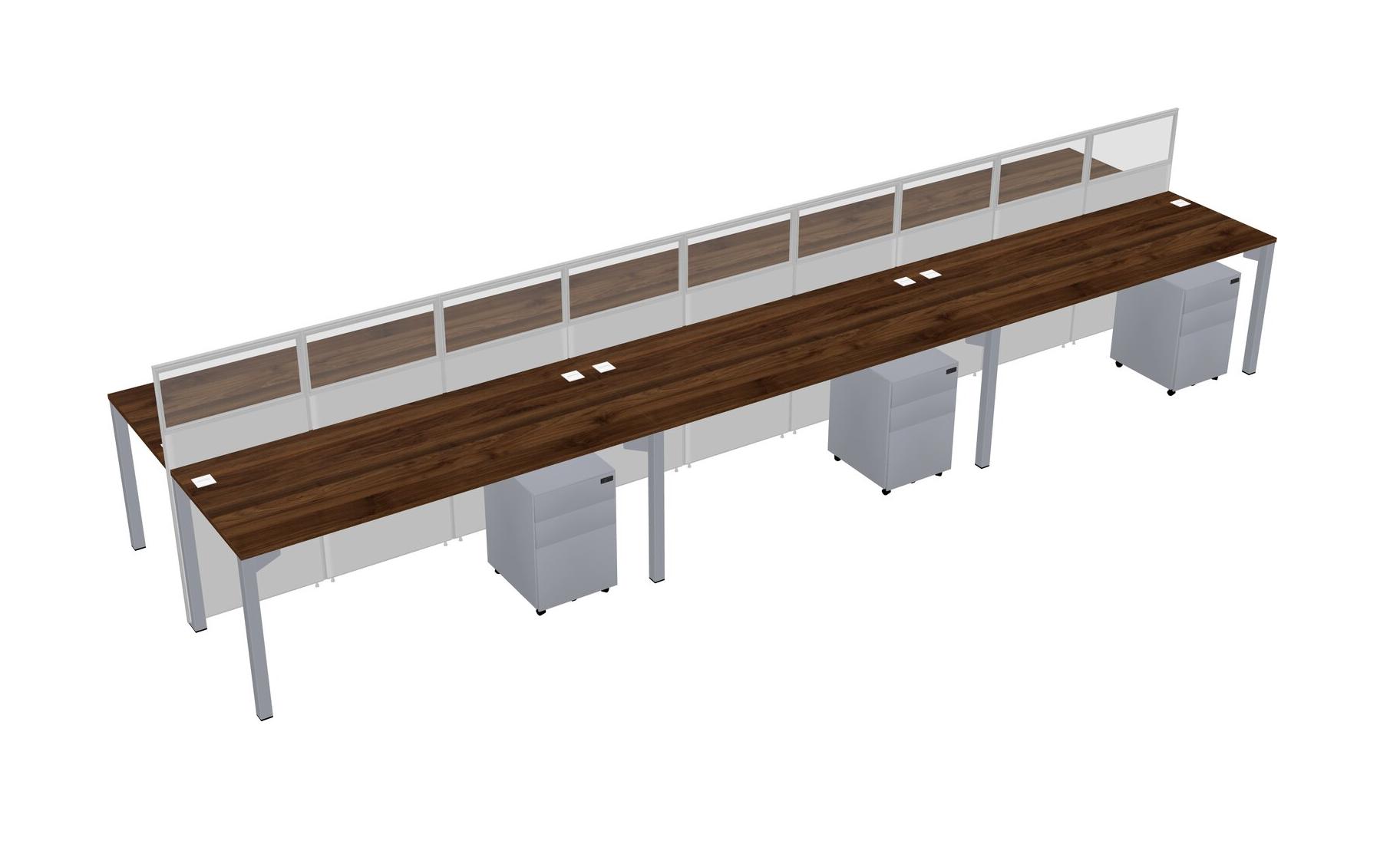 Columbia Walnut Shared Rectangular Office Cubicle Panel System With Mobile Drawers For 6 Persons