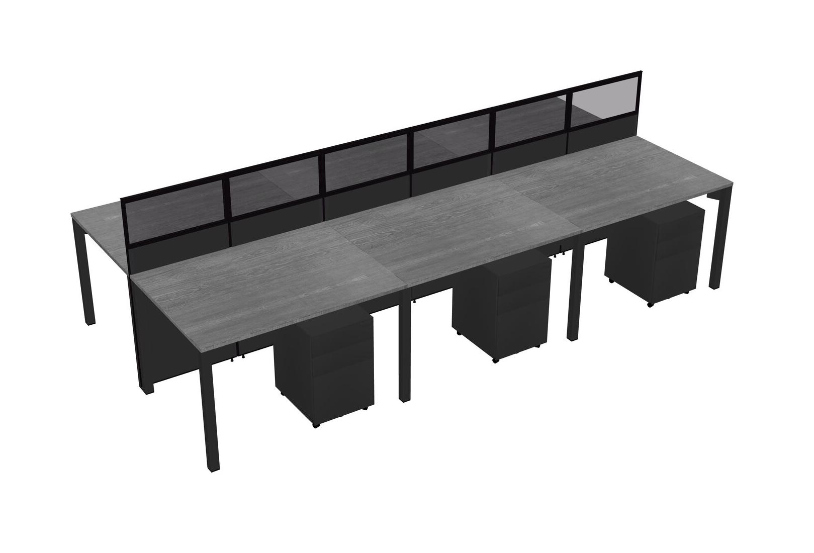 Grey Shared Rectangular Office Cubicle Panel System With Mobile Drawers For 6 Persons