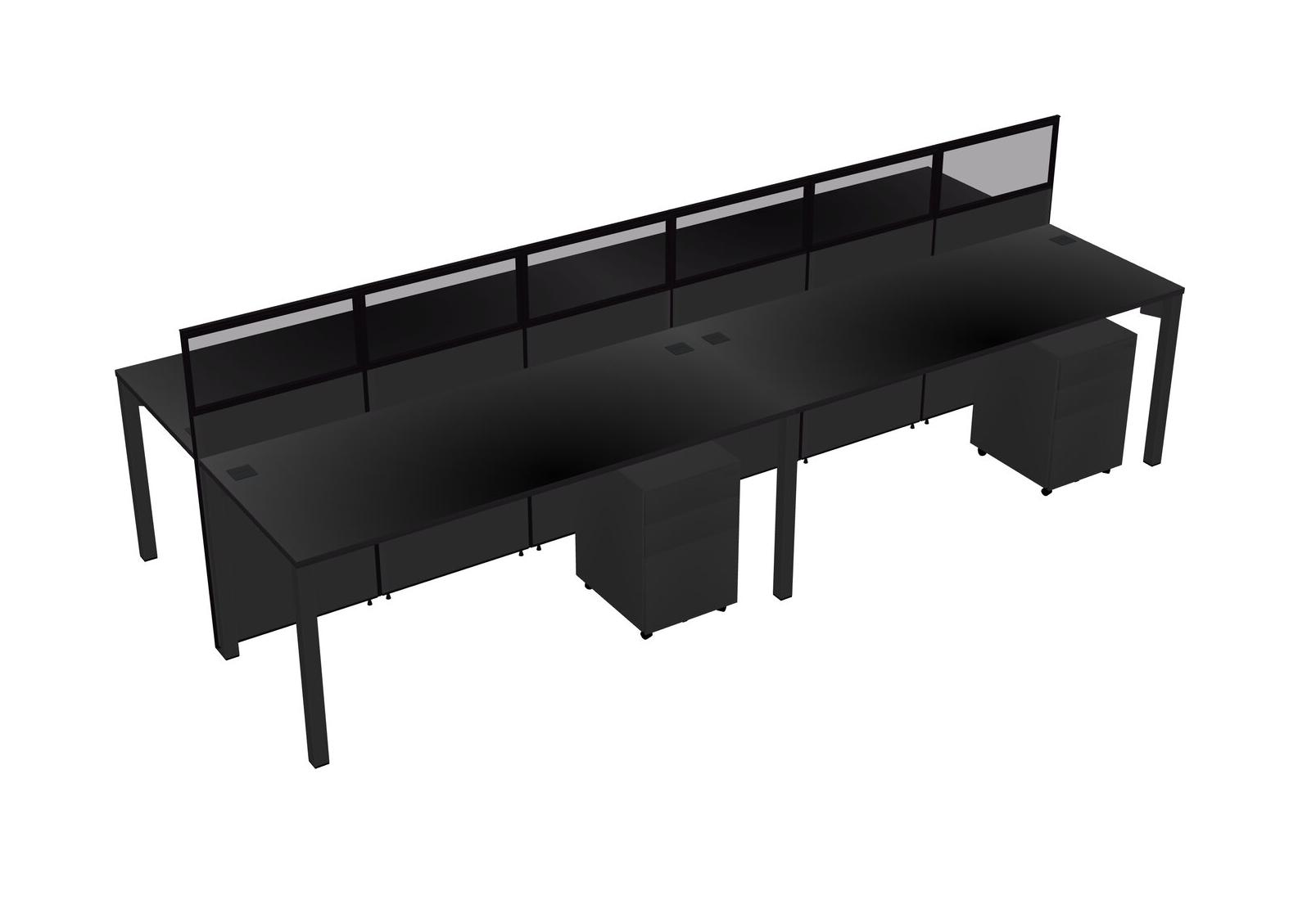 Black Shared Rectangular Office Cubicle Panel System With Mobile Drawers For 4 Persons