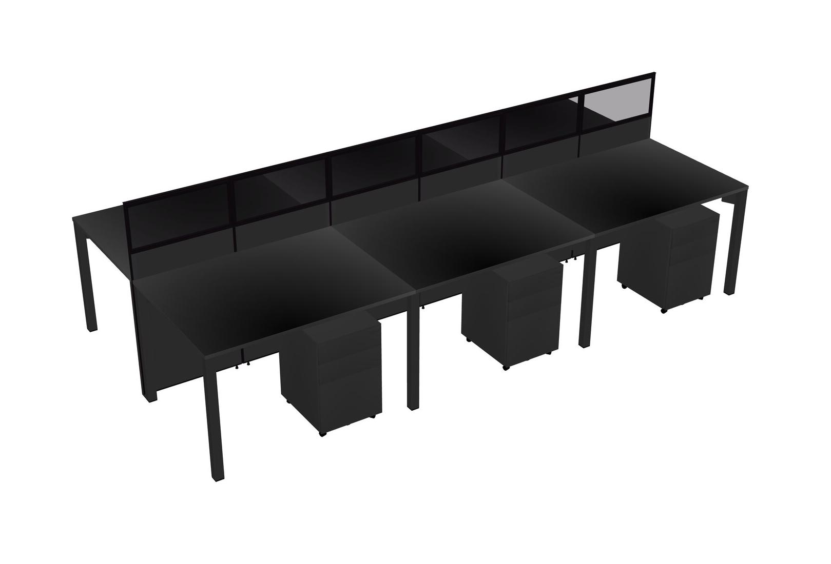 Black Shared Rectangular Office Cubicle Panel System With Mobile Drawers For 6 Persons