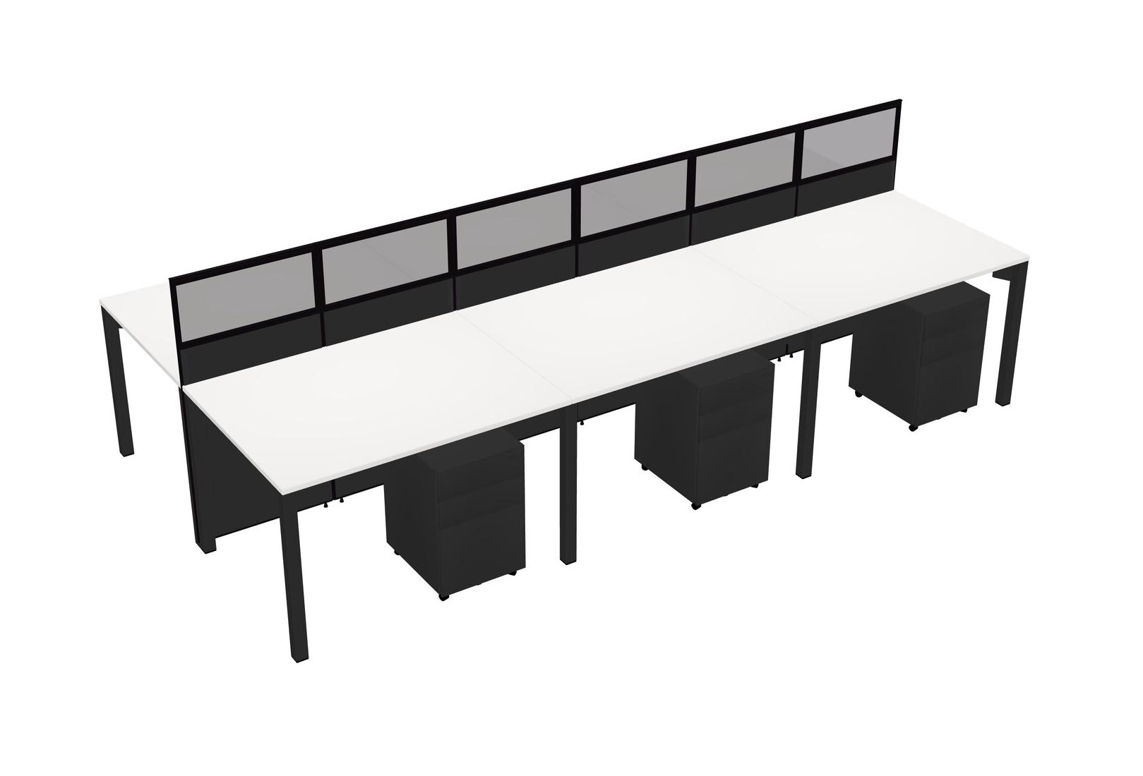 White Shared Rectangular Office Cubicle Panel System With Mobile Drawers For 6 Persons