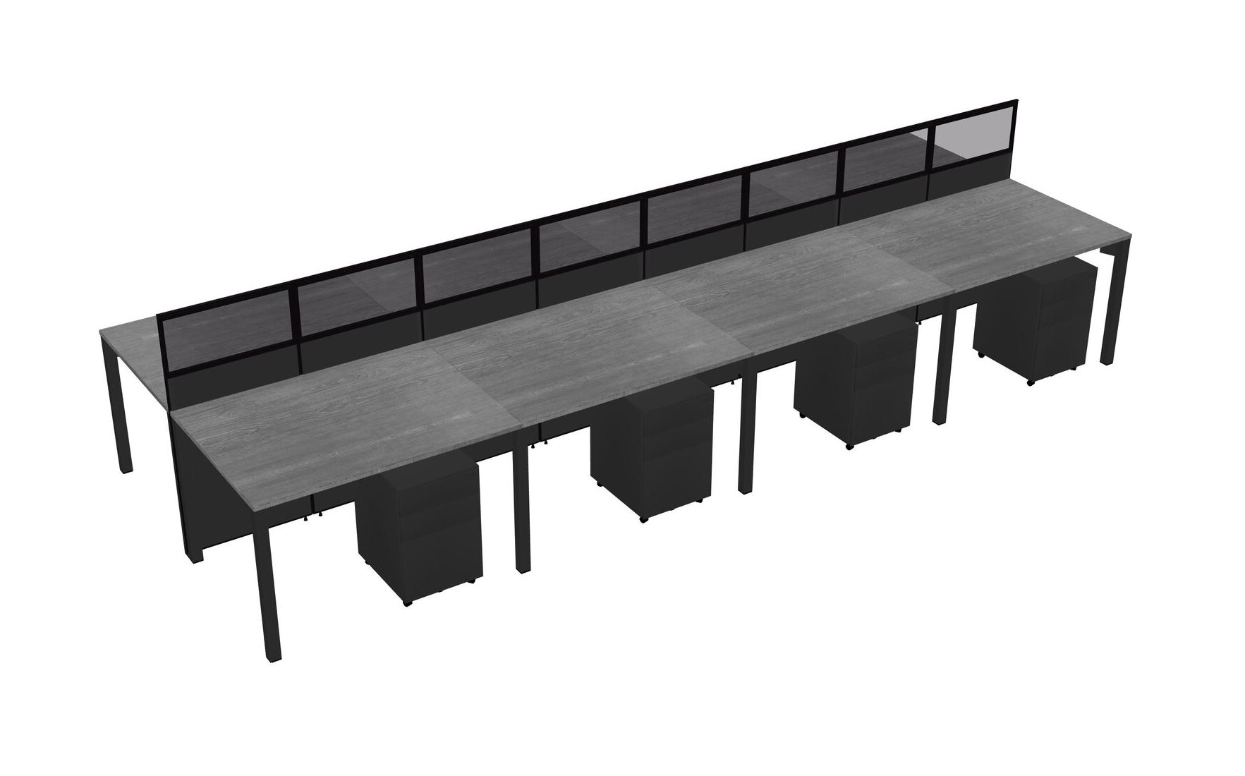 Grey Shared Rectangular Office Cubicle Panel System With Mobile Drawers For 8 Persons