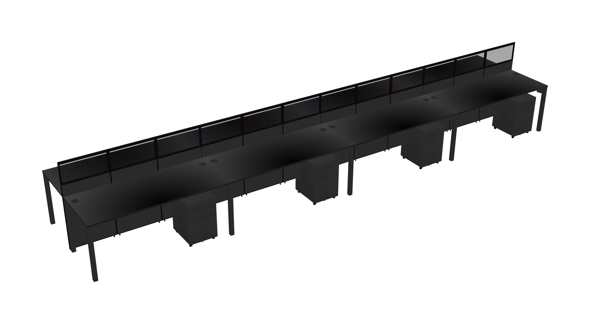 Black Shared Rectangular Office Cubicle Panel System With Mobile Drawers For 8 Persons