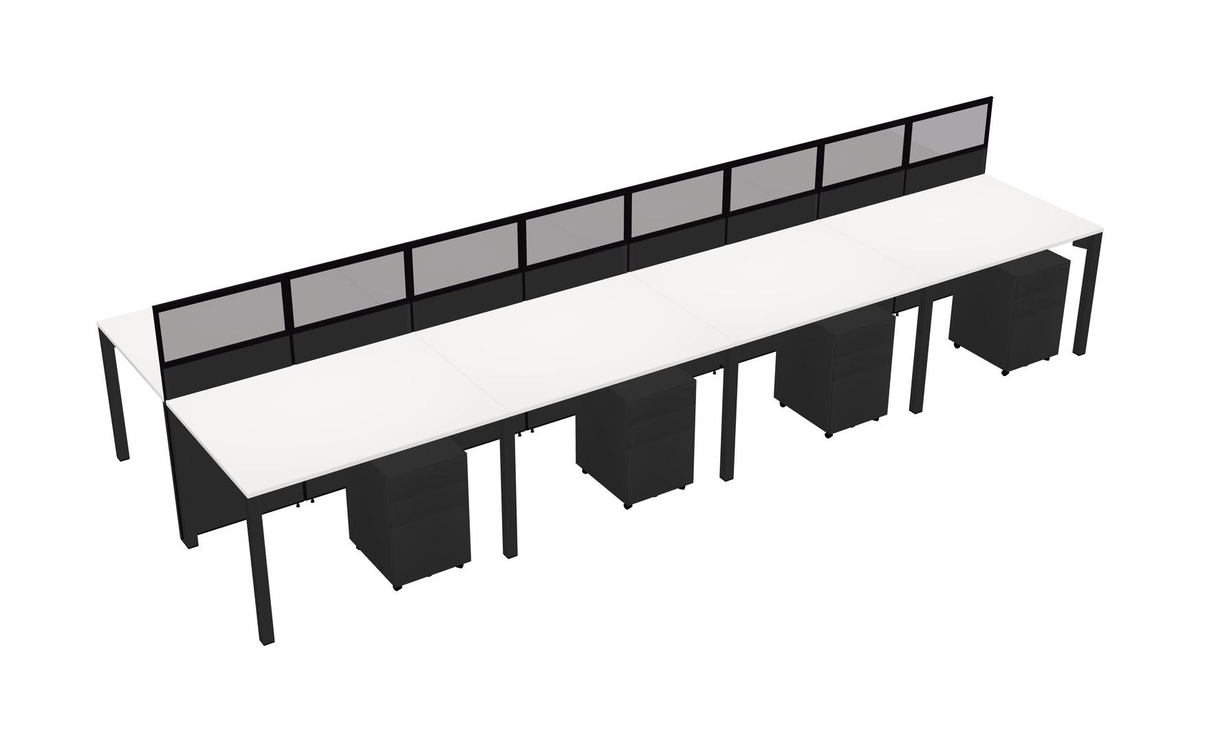 White Shared Rectangular Office Cubicle Panel System With Mobile Drawers For 8 Persons