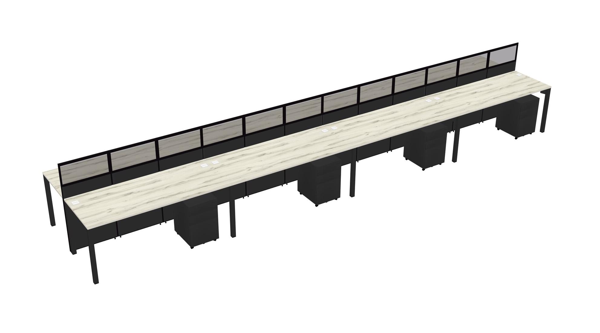 Heinne Holz Shared Rectangular Office Cubicle Panel System With Mobile Drawers For 8 Persons