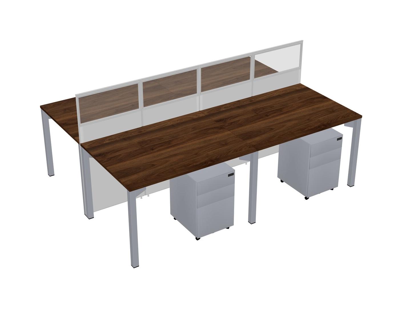 Columbia Walnut Shared Rectangular Office Cubicle Panel System With Mobile Drawers For 4 Persons