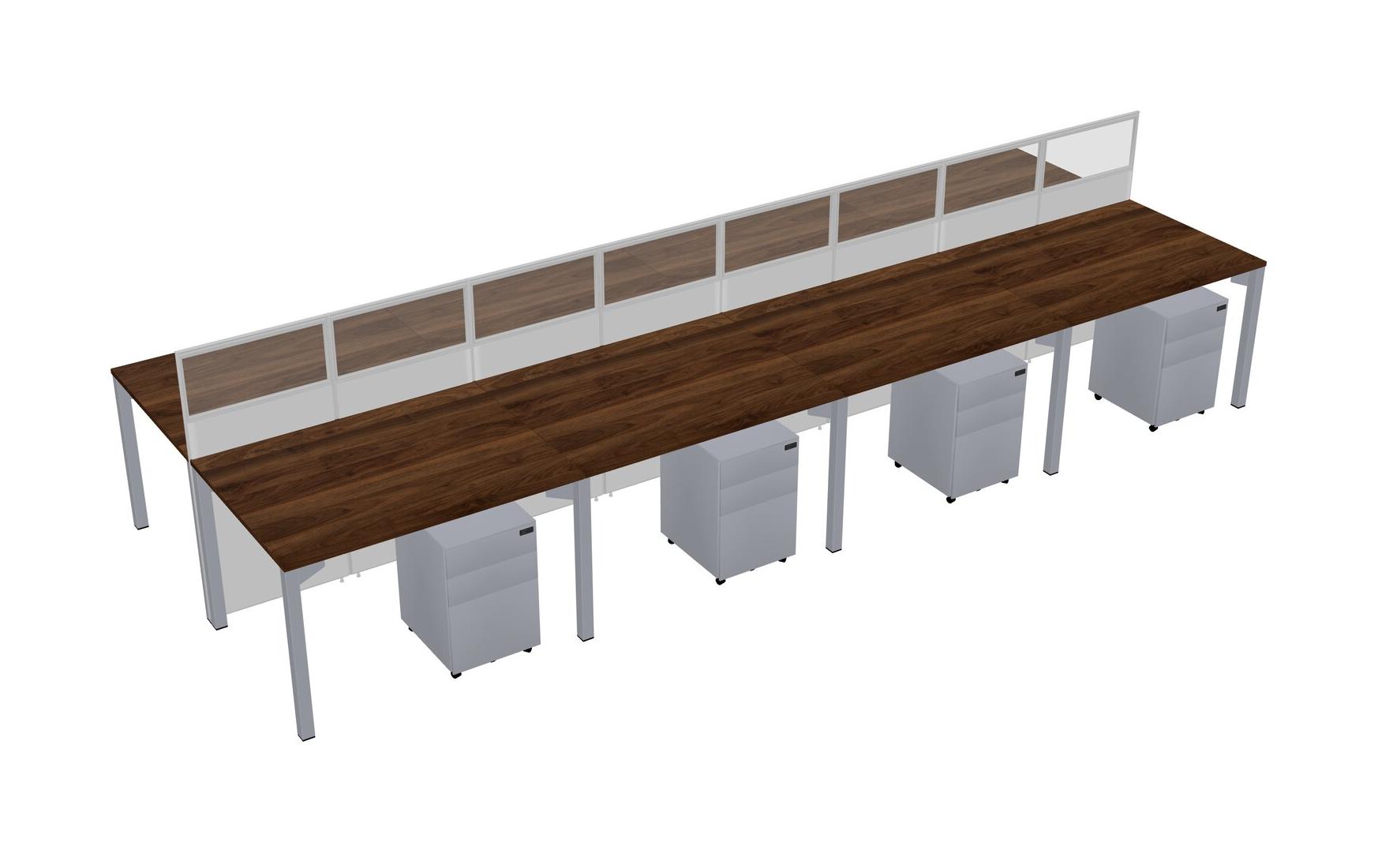 Columbia Walnut Shared Rectangular Office Cubicle Panel System With Mobile Drawers For 8 Persons