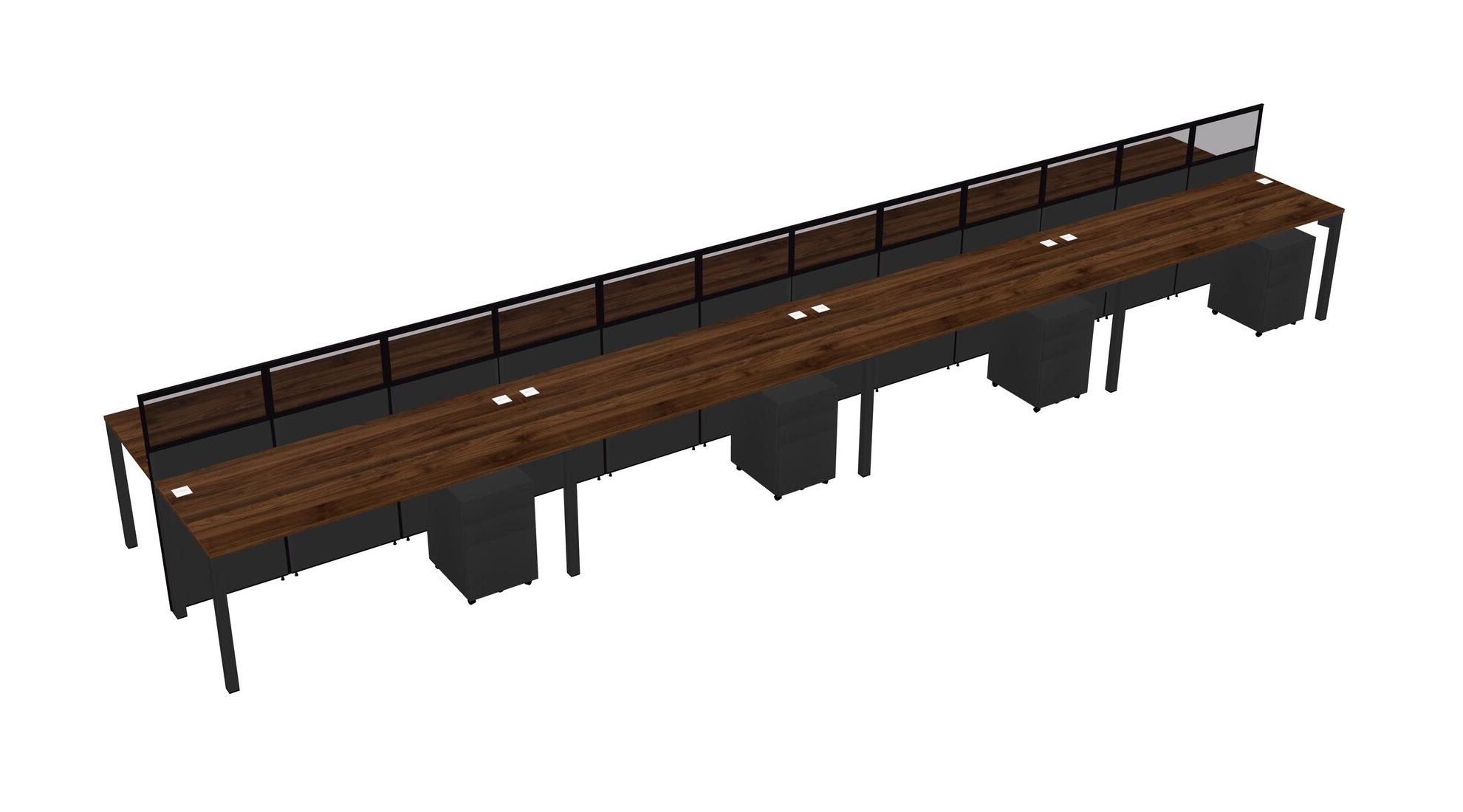 Columbia Walnut Shared Rectangular Office Cubicle Panel System With Mobile Drawers For 8 Persons