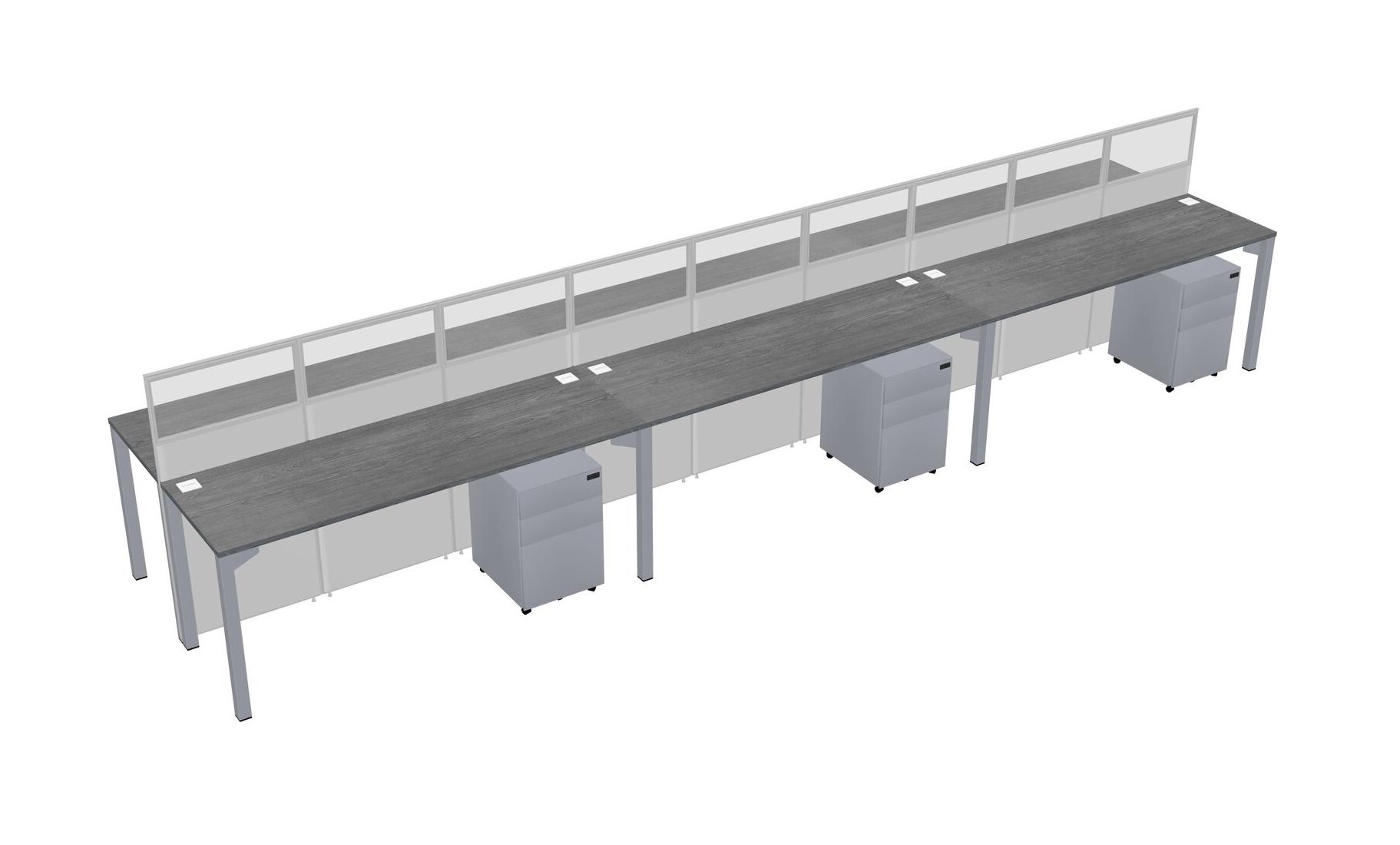 Grey Shared Rectangular Office Cubicle Panel System With Mobile Drawers For 6 Persons