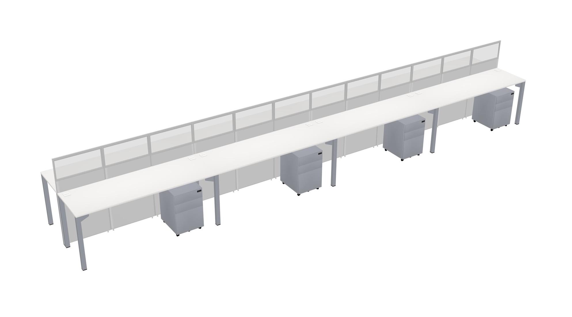 White Shared Rectangular Office Cubicle Panel System With Mobile Drawers For 8 Persons