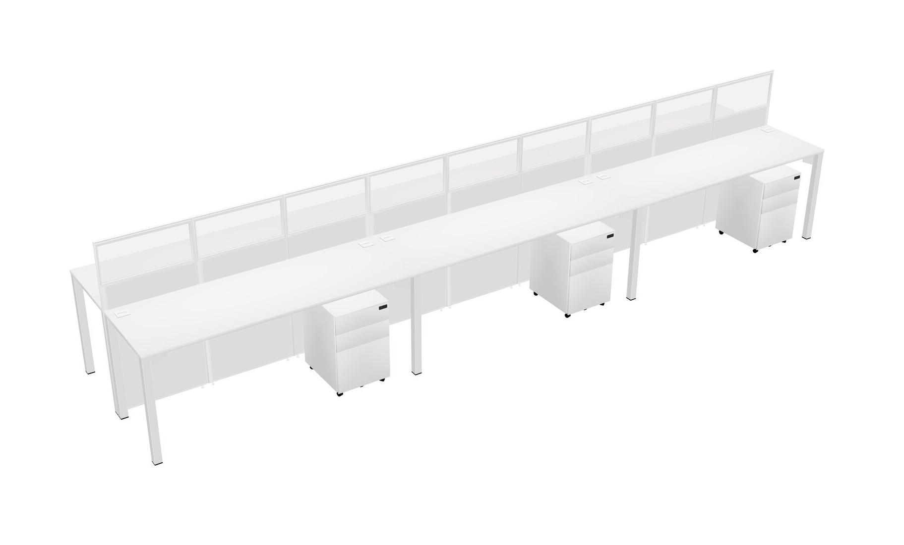 White Shared Rectangular Office Cubicle Panel System With Mobile Drawers For 6 Persons