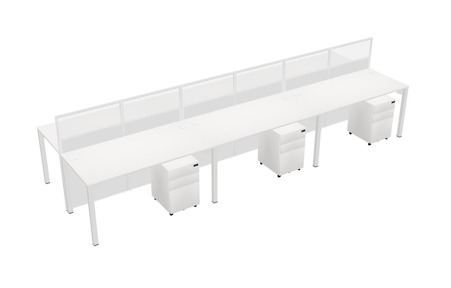 White Shared Rectangular Office Cubicle Panel System With Mobile Drawers For 6 Persons