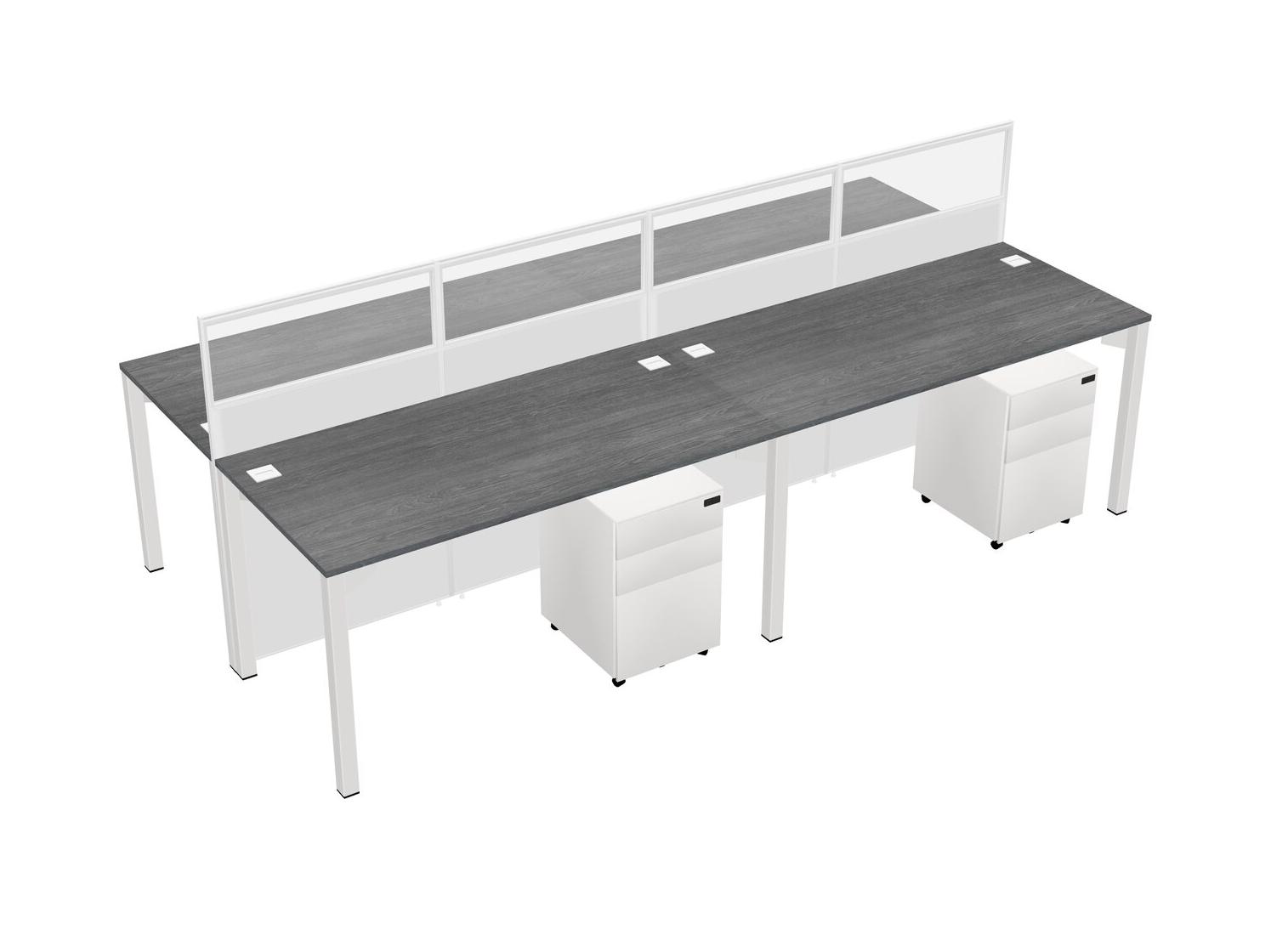 Grey Shared Rectangular Office Cubicle Panel System With Mobile Drawers For 4 Persons
