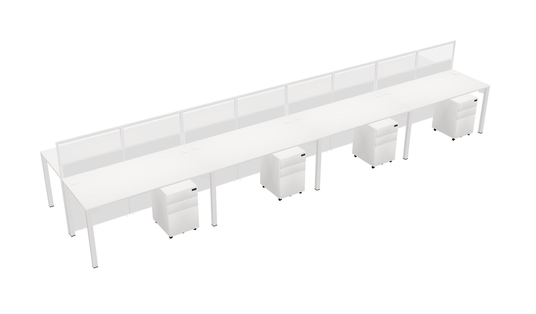 White Shared Rectangular Office Cubicle Panel System With Mobile Drawers For 8 Persons