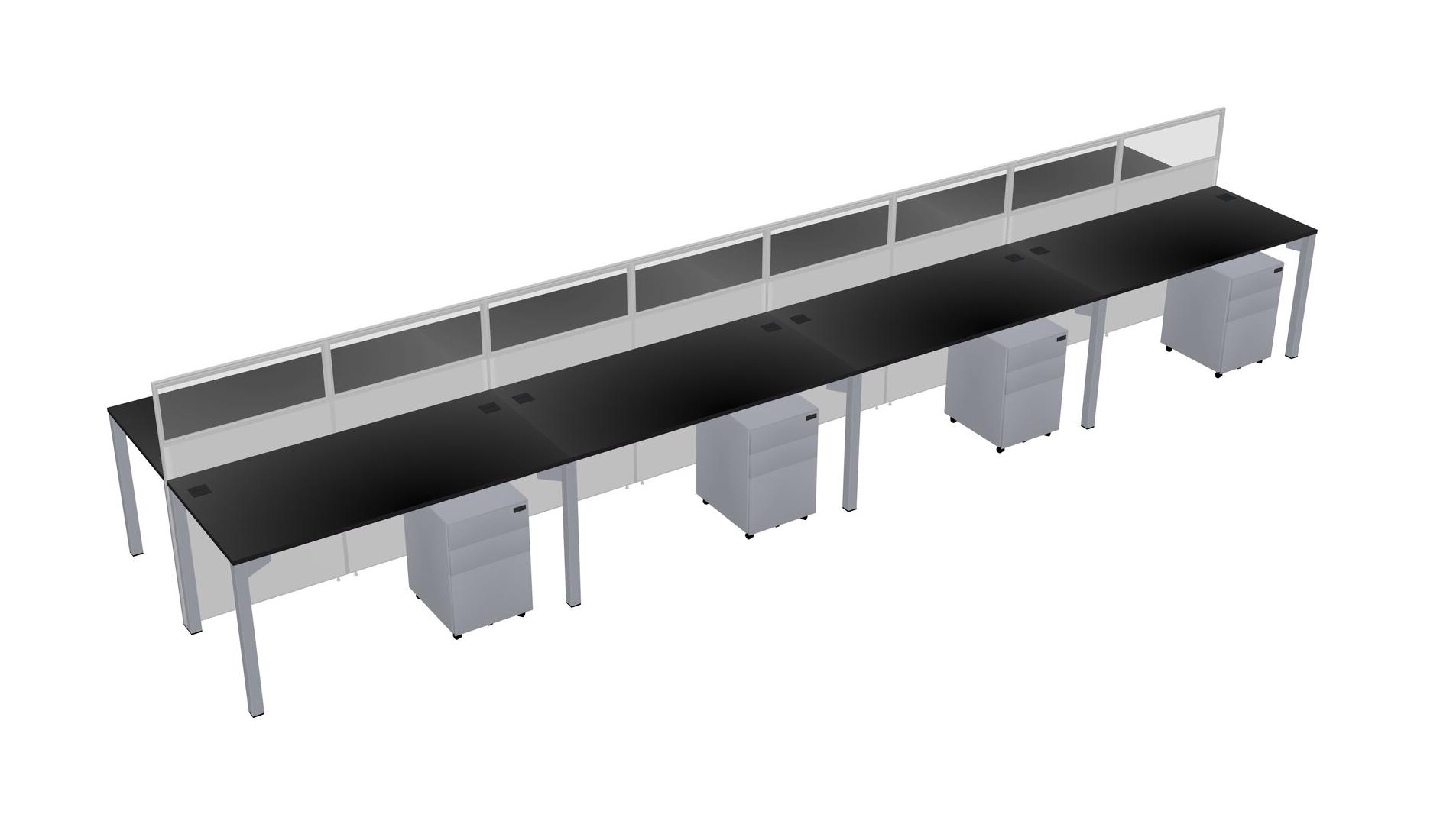 Black Shared Rectangular Office Cubicle Panel System With Mobile Drawers For 8 Persons